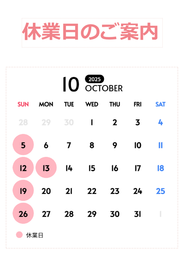 10月の休業日をお知らせします。