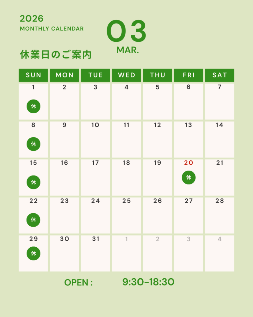 3月の休業日のお知らせ